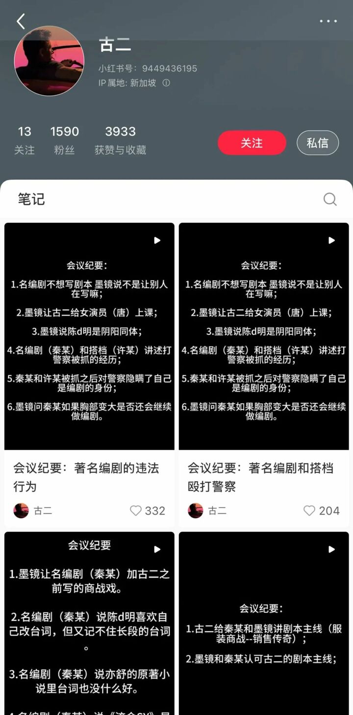 10月31日,青年编剧“古二”(程骏年)发布多段录音,相关话题冲上热搜!