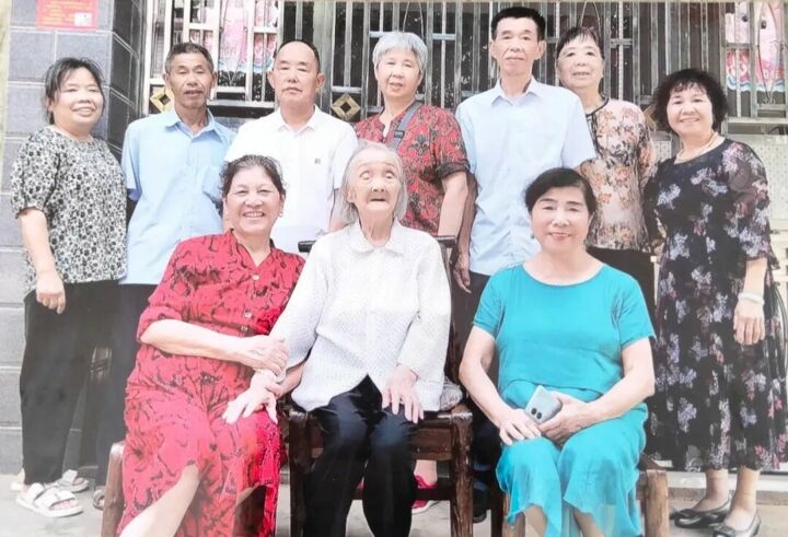 而在母亲105岁生日那天,这个家完成了一场最隆重的仪式——拍摄了一张标准的全家福。照片里,105岁的谭爱胆奶奶端坐中央,七十岁的儿子肖汉武与兄弟姐妹们站在身后,曾经的少男少女,如今也已是鬓发皆白。