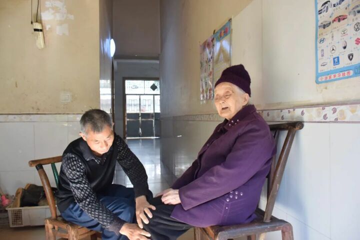 如今,105岁的谭爱胆眼睛因白内障几乎看不见,耳朵也听不太清了。尽管感官衰退,谭爱胆的记性与感知力却出奇的好。只要村里的老熟人来了,她凭着模糊的声音和熟悉的脚步,就能分辨出来者是谁,然后摸索着,赶紧到门边迎接。