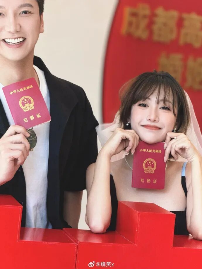 4月25日,演员魏笑领证结婚,好友赵露思全程陪同见证。